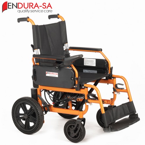 Heavy-duty 20-inch (51cm) Alulithium electric wheelchair featuring advanced lightweight components. Quality equipment by ENDURA-SA South Africa.