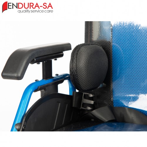 | Special Features | Foldable, aluminium, recline & tilt wheelchair with a adjustable extended headrest with a full body harness, torso and leg support. Fixed height & width adjustable armrests. Detachable elevating footrests. |
