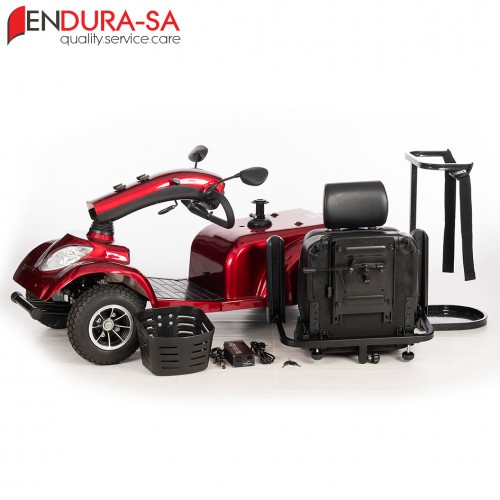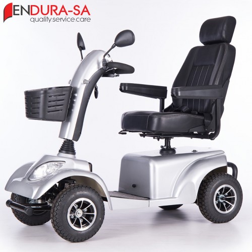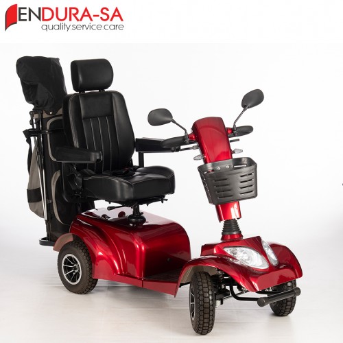 Endura Discoverland Golf Scooter, with its fashionable design, is a strong heavy-duty Golf Scooter with a weight capacity of 180 kg. Front & rear suspension. Enough legroom and short turning radius. Flip back, width & height adjustable armrests, swivel & adjustable seat, LED lights, indicators & horn. The seat has a manual recline function. This unit is great to drive and cheap to maintain compared to any other golf cart or brand in the market.