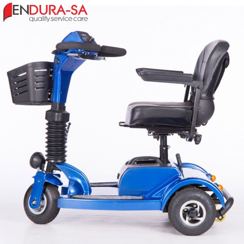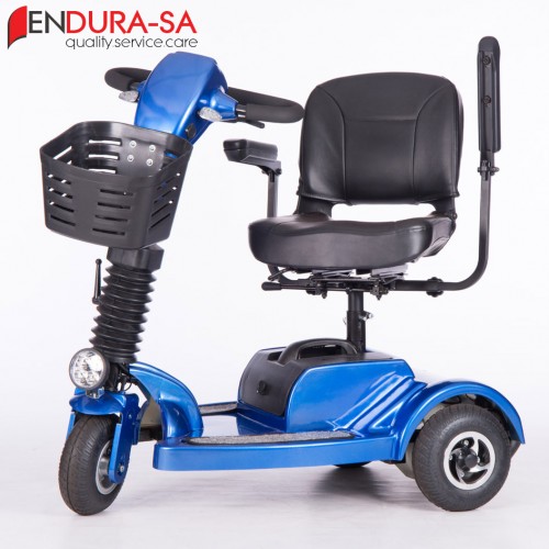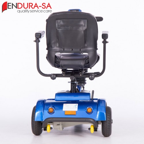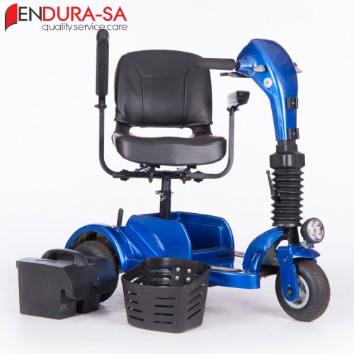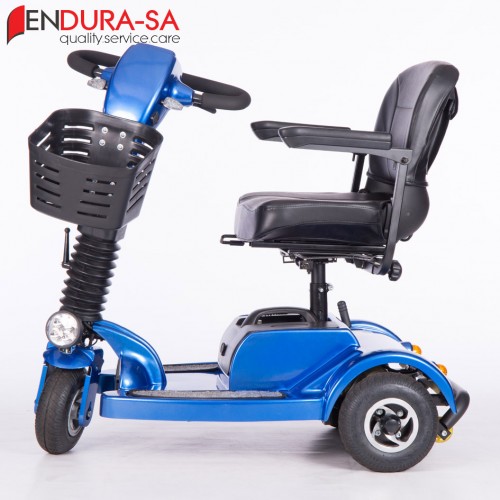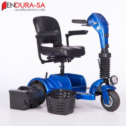 The Endura Voyager Mobility Scooter is a compact mobility scooter with the power of a larger scooter. Enough legroom and short turning radius. Flip back, width adjustable armrests, swivel seat, LED lights, indicators & horn. Lightweight and compact design for traveling. Batteries remove for easy transportation.